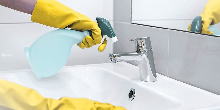 While using a bleach disinfectant spray, it is important to wear gloves to prevent skin irritation. The space to be cleaned should be well ventilated to quickly clear off the smell of the bleach.